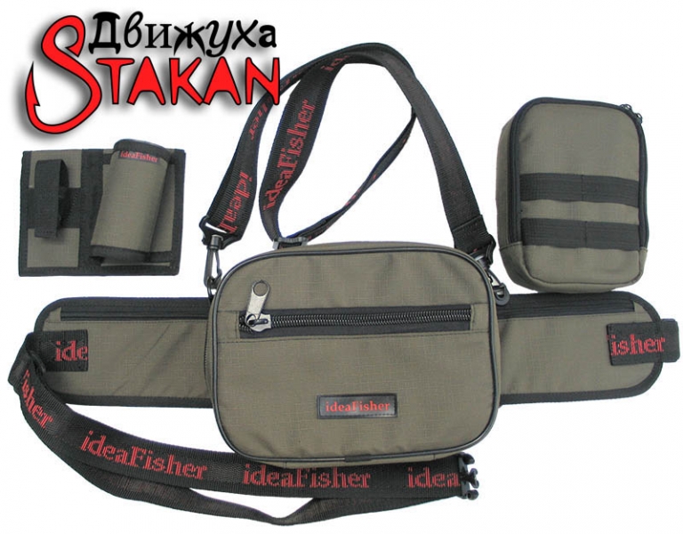 Модульная поясная сумка Stakan Движуха Олива с органайзером для приманок и съёмным держателем удилища.