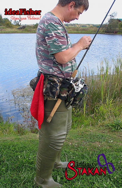 - Пояс будет удобен и для зимней рыбалки. В стакан можно вставить черпак, багор.